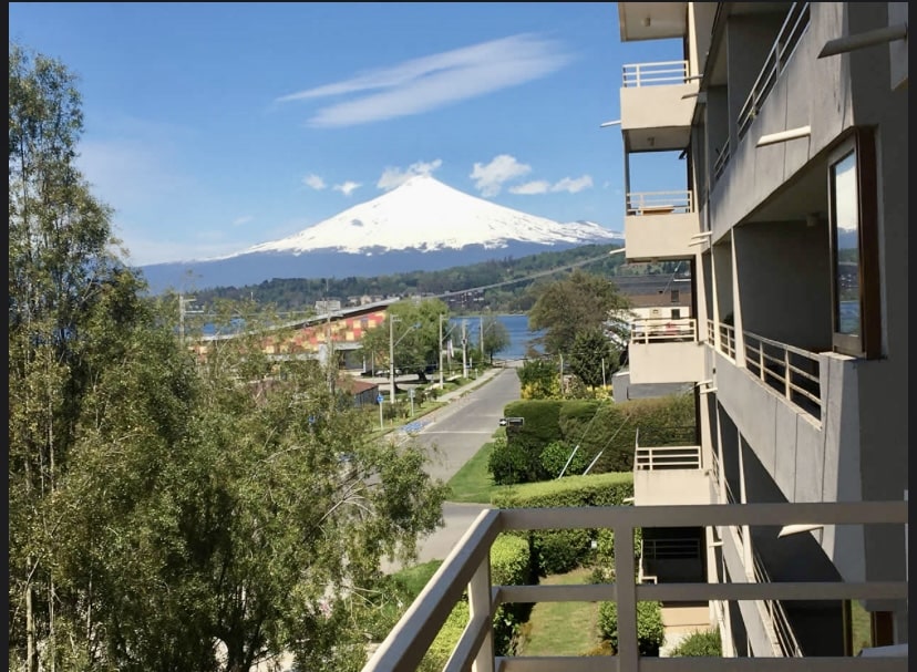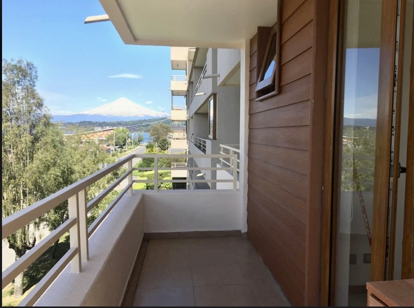Recién remodelado, posee 3 dormitorios, 2 baños, cocina amoblada con logia, estacionamiento y bodega, 90 mts2; está frente al lago Villarrica y tiene vista al Volcán Villarrica.